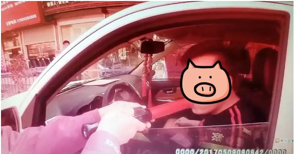 逃跑的5秒钟内,撞到了三轮车,又撞到了升降杆。